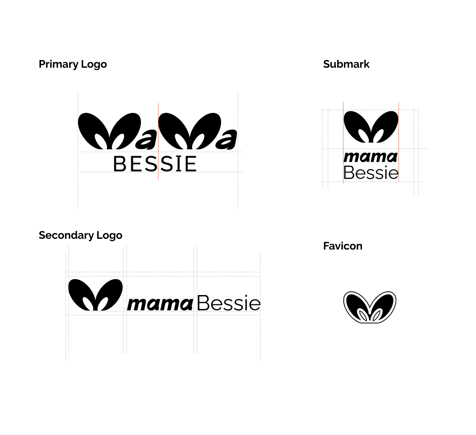LOGO DESIGN - Silhouette of a Mother kissing her infant child + mother's love + Stylized M for "Mama". Included a primary and secondary logo design to respond to products and a submark and favicon for labels and digital media.