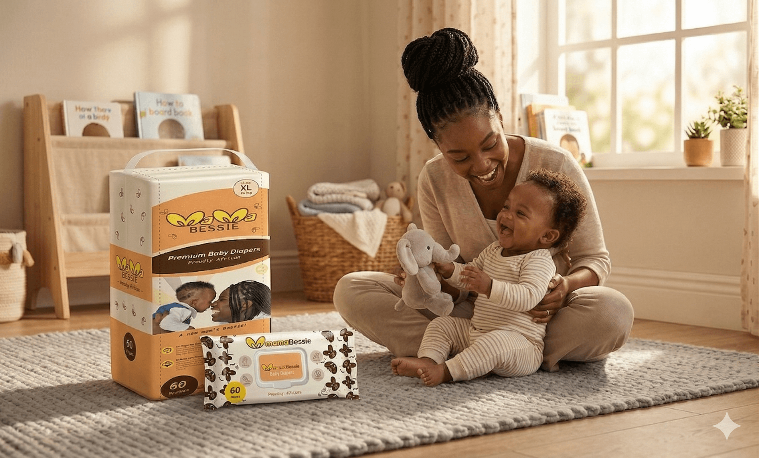 Mama Bessie is a proudly Nigerian diaper and wipes brand created by a new mom for moms across Africa. It offers affordable, skin-friendly, and ultra-absorbent baby care products that combine comfort, quality, and trust—because every baby deserves gentle protection, and every mother deserves peace of mind.