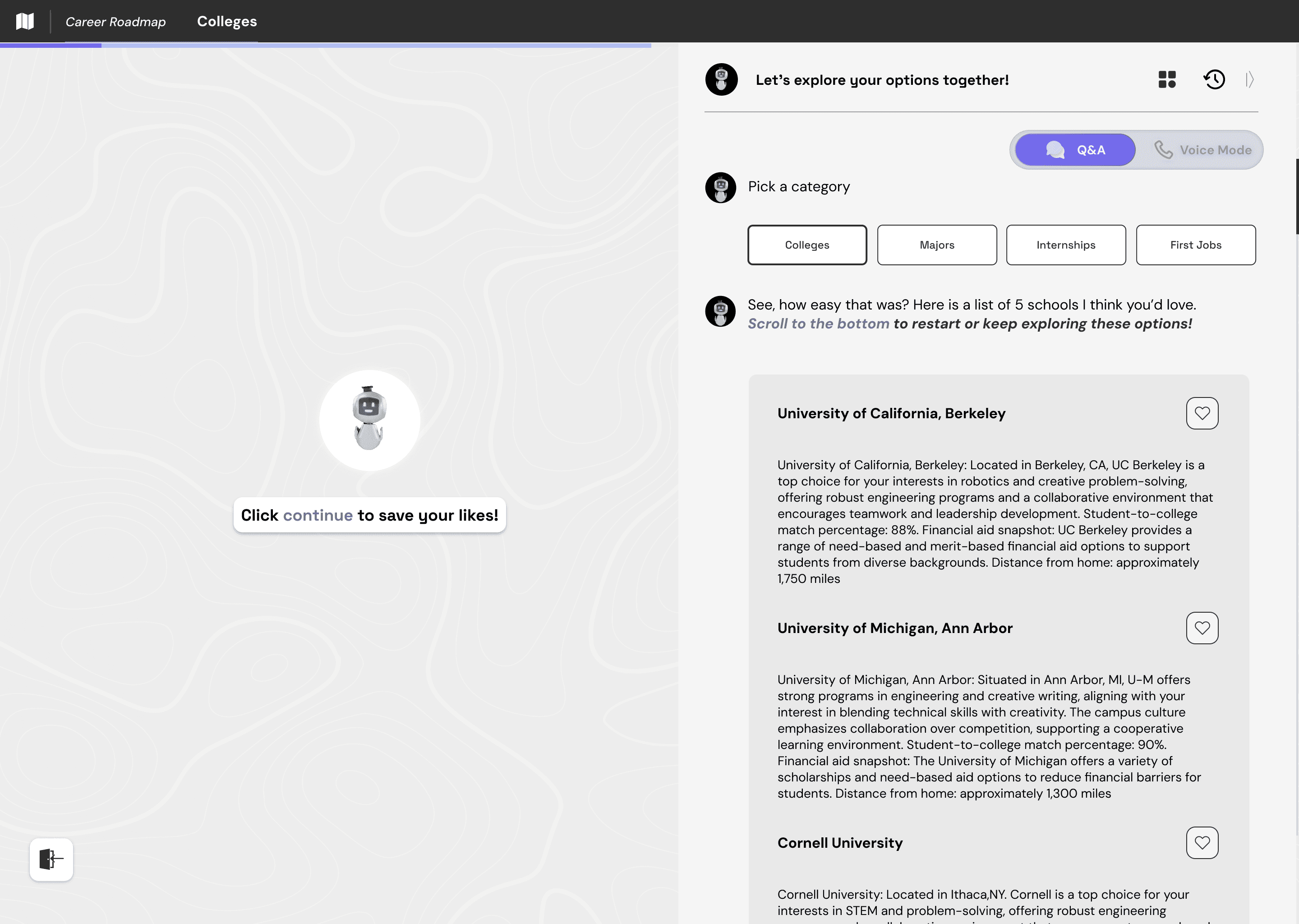 Our solution was to create a vertical AI agent to automate the day to day repetitive administrative tasks of counselors and encouraging a user experience and visual design that felt personalized to the student's needs and could pull and organize student exploration for the counselors.