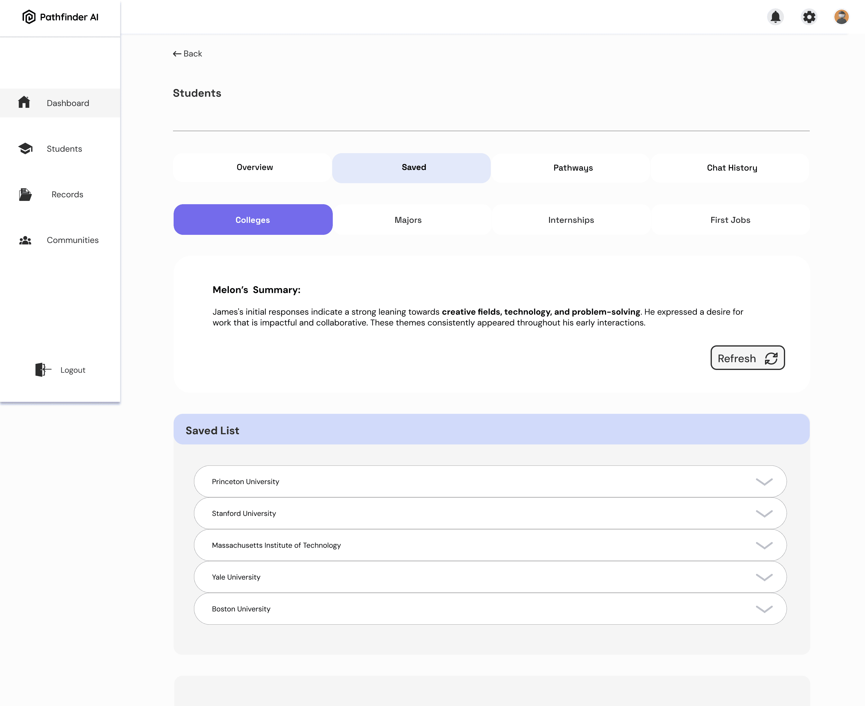 Pathfinder AI was created to serve a different demographic; high-school students who wanted to know what was next and College counselors who could not keep up with all the students needs.