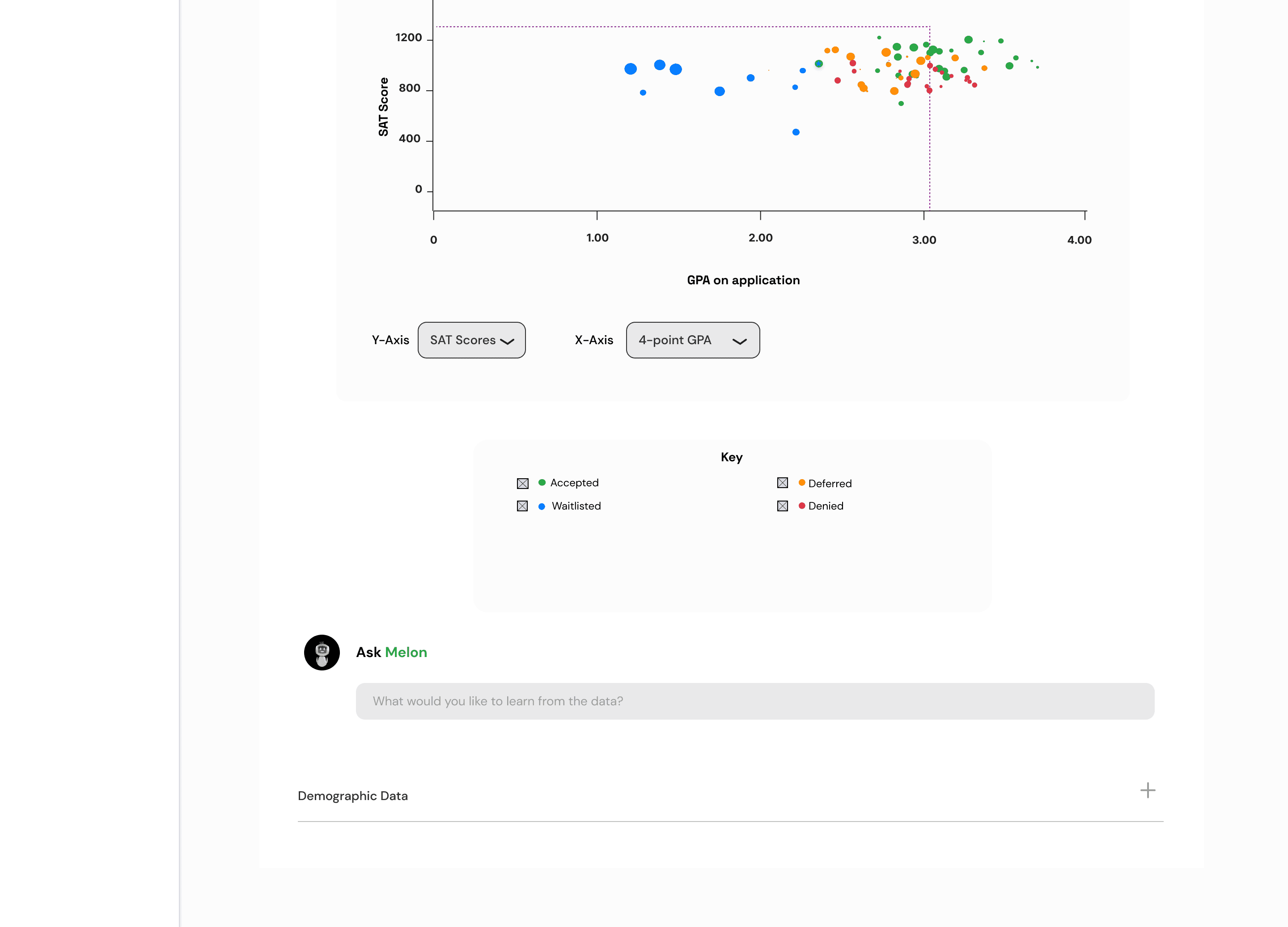 For the explorers i.e. the students, we created a UI with a split screen interface; to the left, a Canvas Design allowing for paths to appear as nodes on the canvas and show relationality with colors and shapes, and, to the right, we have the AI agent - Melon, that they can ask clarifying questions and see their nodes change in real-time